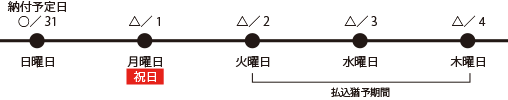 なお、口座番号等につきましては、お手数ですが、共済団までお問い合わせください。 - Q22掛金納付予定日が○月末日となっていますが、その日は日曜日なので振込みが出来ません。納付予定日を過ぎて振込をしても問題ありませんか。